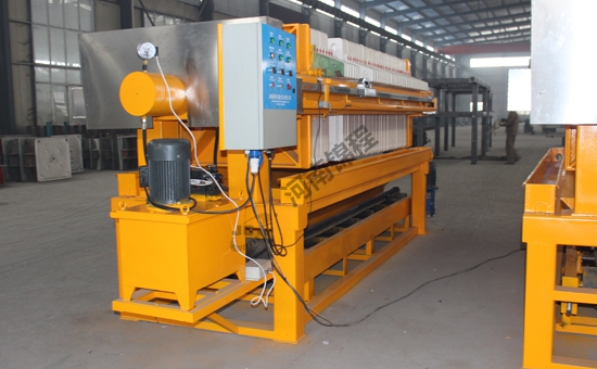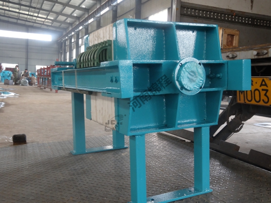 5板框式壓濾機(jī)與廂式壓濾機(jī)結(jié)構(gòu)相同,只是過(guò)濾部分是一板一框和濾布組成,板框空間是濾室。